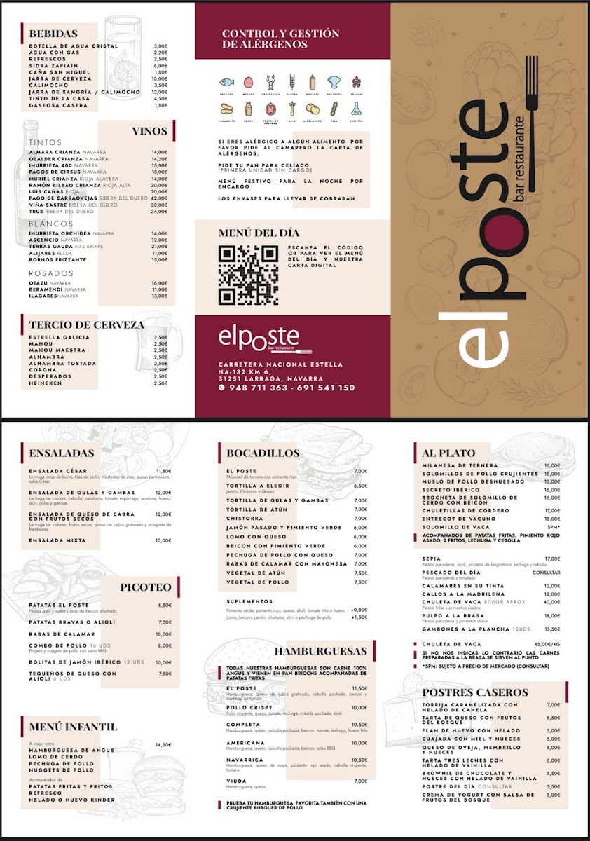 Introducing the menu at El Poste, a vibrant bar and grill located along Carretera Nacional in Larraga, Navarra, where local flavors take center stage. The menu celebrates traditional Spanish cuisine, offering dishes that are both wholesome and delightful.